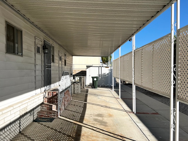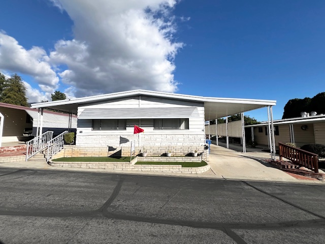 Maintenance Free Yard! Welcome to Valencia Lea, Highland’s premier +55 community! At 1320 Sq ft, this 1976 Woodcrest home has great curb appeal featuring an extra-large patio with bonus backyard space. The low maintenance turf and patio area are perfect to enjoy the outdoors, but with now work needed! This home includes, 2 bedrooms, 2 baths with family room. The large open living and dining areas have plenty of windows letting in tons of natural light. The kitchen just off the family room includes all appliances. The family room has a slider to the porch. The laundry room with included washer/dryer has plenty of storage with a door to the carport to easily get groceries in from your car. The guest bedroom features a Jack and Jill bathroom. The light filled primary bedroom features a large, huge walk-in closet. The attached bath has a large garden tub and glass doors to relax in. The full-length carport includes a storage shed. Don’t delay in taking a tour!